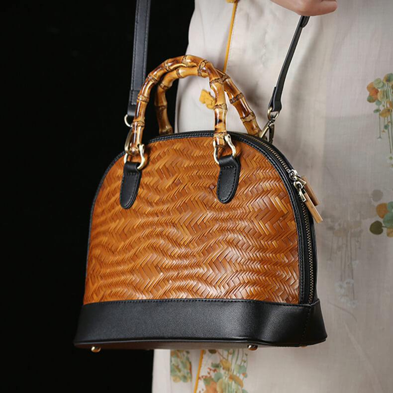 Bamboo Woven Wave Pattern Shell Leather Bag