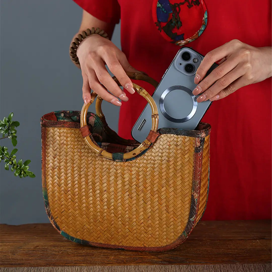 Bamboo Woven Handbag for Women Outdoor Picnic Bag